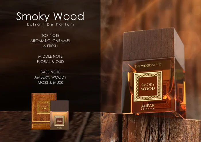 “Smoky Wood” by Anfar London offers a sophisticated and multi-faceted fragrance experience. The scent opens with a captivating trio of aromatic freshness, rich caramel, and invigorating fresh notes.