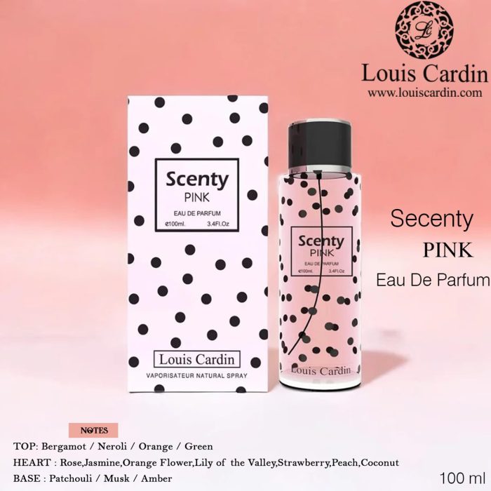 Scenty Pink EDP Opens with Fresh Fruity Top Notes of Bergamot, Neroli, Orange, Green Giving Way to Floral Middle Notes of Rose, Jasmine, Orange Flower, Lily Of The Valley, Strawberry, Peach, Coconut and Lands on the Base Notes of Patchouli, Musk, Amber